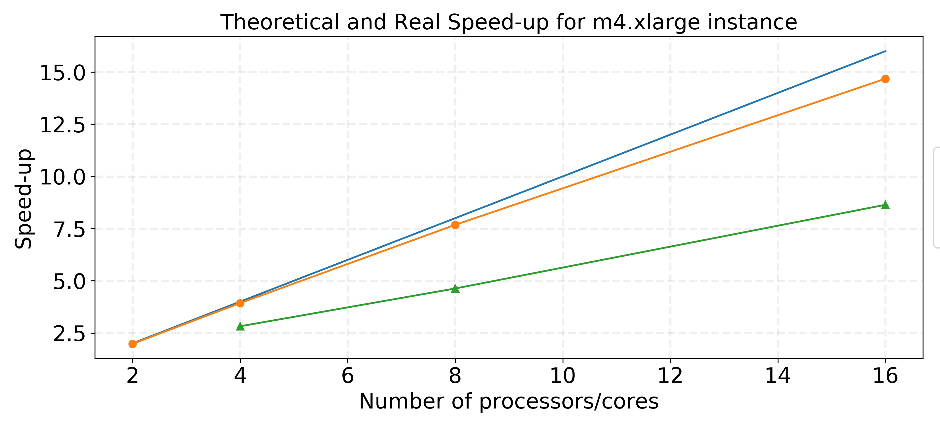 We tested our parallelized code using m4.xlarge, m4.10xlarge, and m4.16xlarge instances.